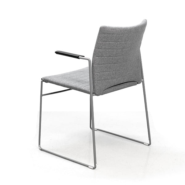 Moderni harmaalla kankaalla ympäriverhoiltu vierastuoli käsinojilla.